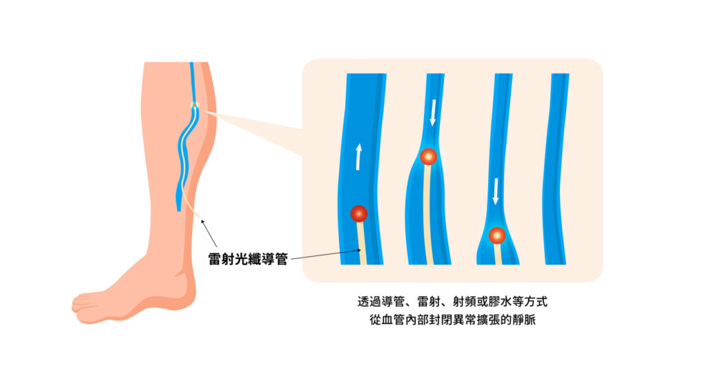 微創靜脈曲張手術是指透過導管、雷射、射頻或膠水等方式,從血管內部封閉異常擴張的靜脈,達到治療下肢靜脈曲張的目的,無須傳統開刀抽除靜脈。