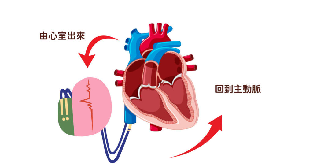裝置啟動後可協助心臟將血液打到全身,減輕心臟負擔。術後會確認導管位置與血流穩定,並密切監測病人狀態,以支持心臟功能與全身器官灌注。