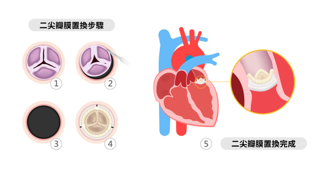 - 修補:二尖瓣逆流或狹窄患者,瓣膜組織尚具修復潛力,且解剖條件適合微創方式 。