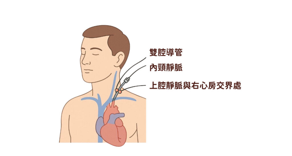 洗腎導管置放是針對急性或短期需要血液透析的病人,所進行的一種臨時性血管通路建立手術。醫師會在無菌環境下,選擇一條大靜脈(最常見為內頸靜脈或股靜脈),經由穿刺方式將雙腔導管插入血管,尖端置於上腔靜脈與右心房交界處,藉此提供穩定的血液流量進行透析治療。